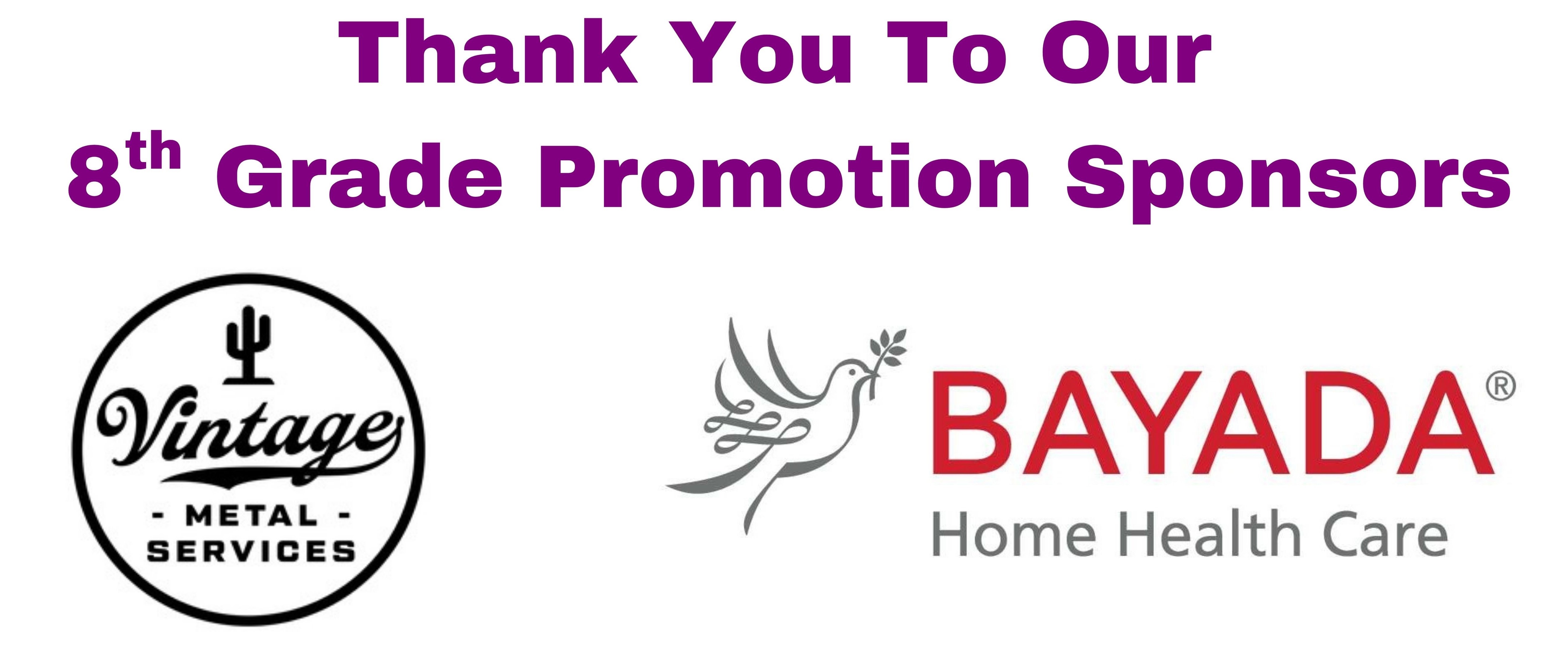 8th Grade Promotion Sponsorship OpportunitiesTitle Sponsors – $1,000 (2 available) Company logo placement on photo booth signage at the event and included on ALL photo booth photos Extra-large comp...