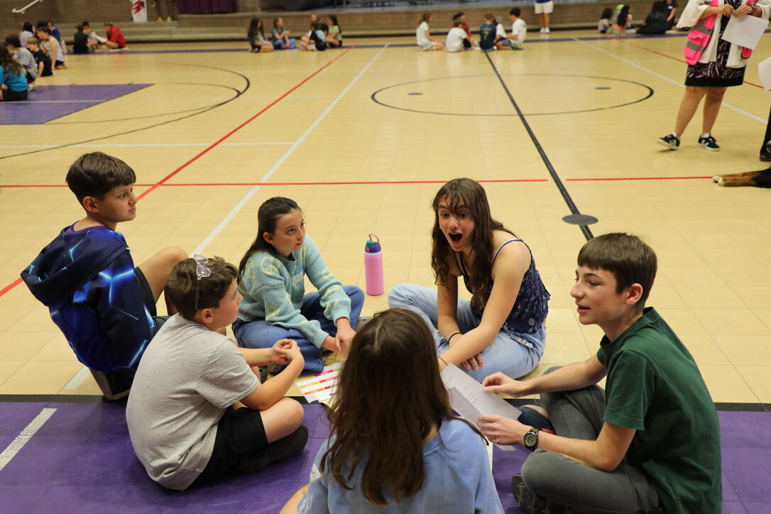 Before anyone set foot outside the gym, the ambassadors led their groups through a set of get-to-know-you questions. Some were lighthearted: “Would you rather have the power to be invisible or be able to fly?” and “Would you rather fight an alligator or a bear?” Others were more pointed: “What are you most excited about for middle school?” and “What are you most nervous about?” The fifth graders had a chance ask questions, too, like: "How tall are the lockers?" and "What do you do on late start mornings?"