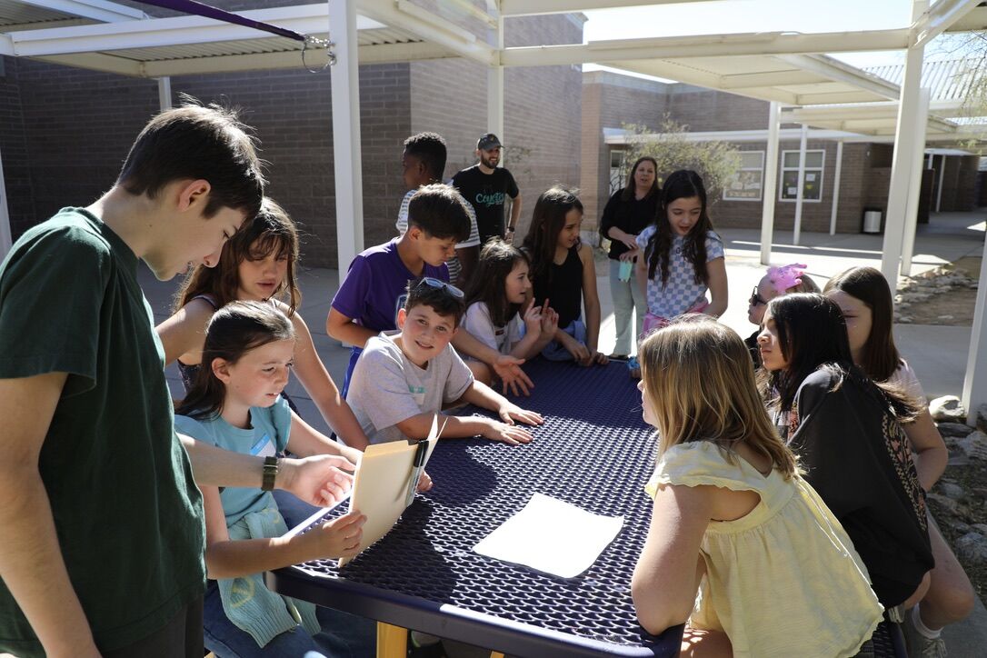 By the time the buses pulled away, the fifth graders from Canyon View and Ventana Vista had toured classrooms, cracked locker combinations, learned about growing tomatoes for space, eaten lunch in a cafeteria with televisions, and heard their future schoolmates perform. They left knowing three things they hadn’t known that morning: what their new school looks like, what an Eagle is expected to be, and that middle school might just be something worth looking forward to.