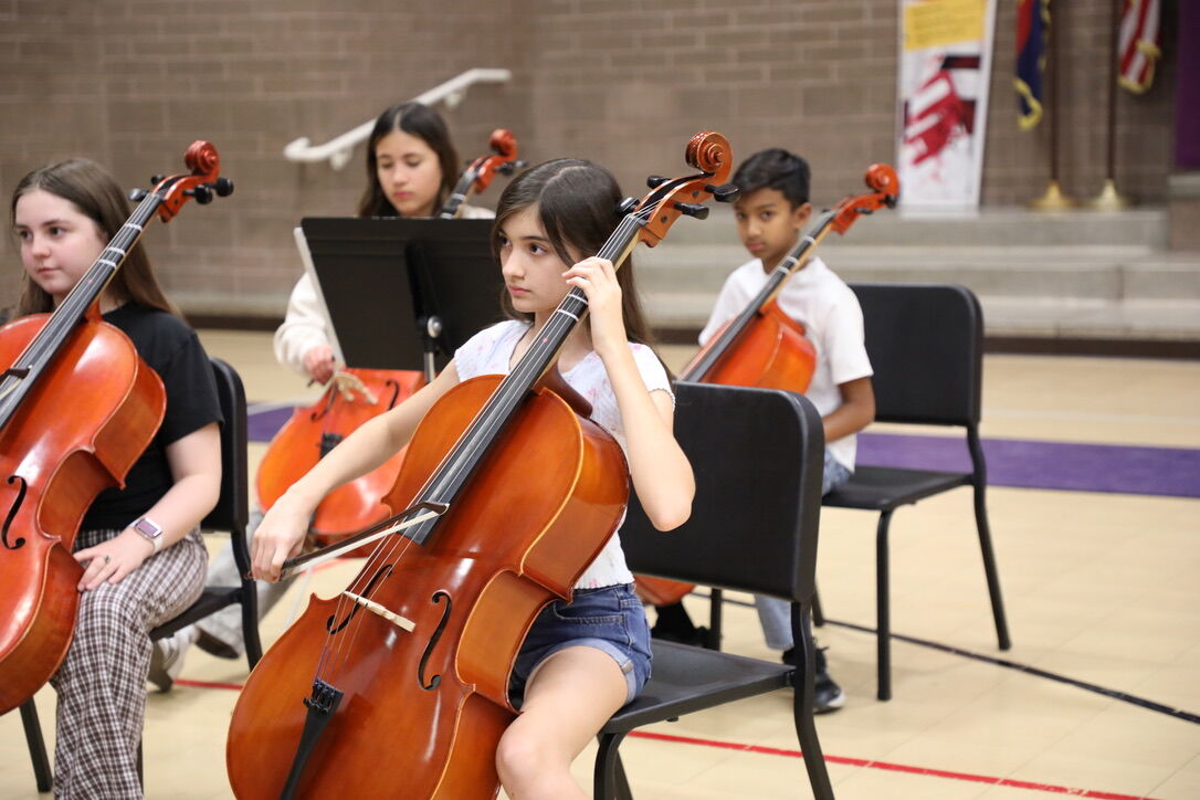 Orchestra students perform during the afternoon showcase for visiting fifth graders at Esperero Canyon Middle School.